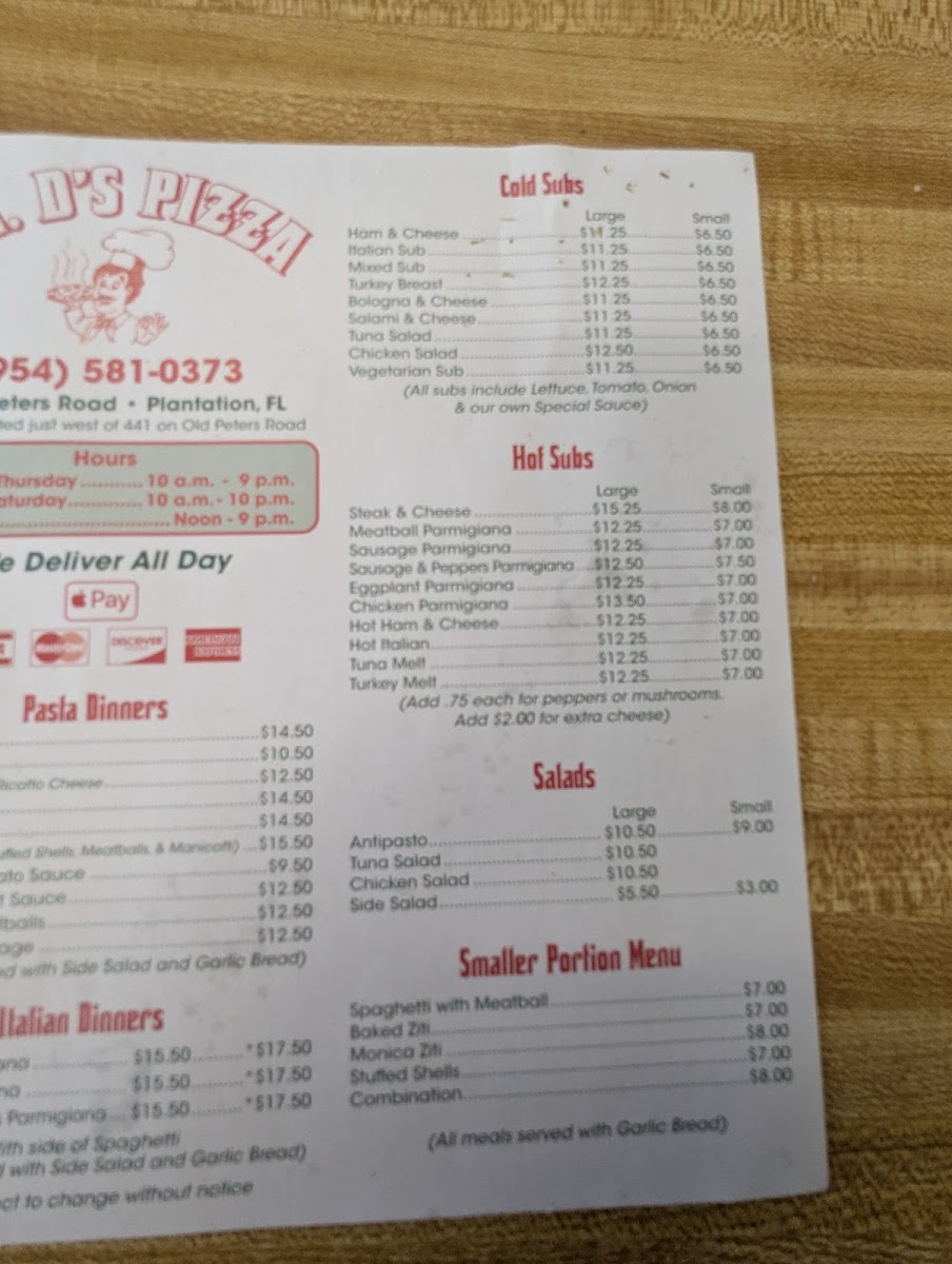 Introducing Mr D's Pizza, a hidden gem nestled at 4260 Peters Rd, Plantation, FL. Known for its authentic New York-style pizza, this cozy pizzeria has captured the hearts of locals and visitors alike. The moment you step inside, the old-school vibe welcomes you, while the aroma of fresh pizza wafts through the air.